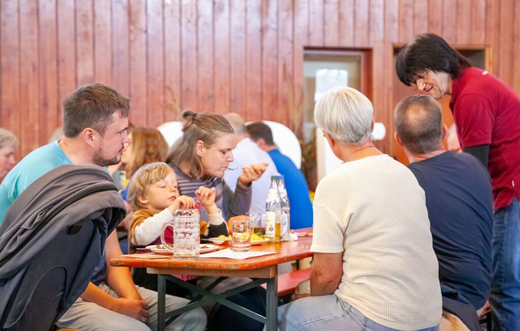 beim Mittagessen